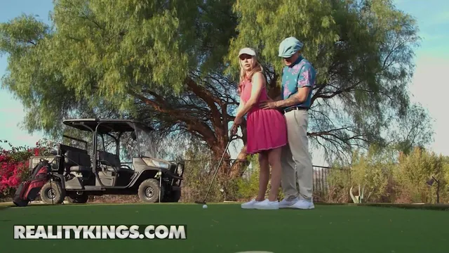 Anscheinend versucht Ms. Summer Vixen, Golf zu lernen, und wie wir sehen werden, Freunde, ist sie darin furchtbar, nein, schlimmer als furchtbar, haha. Ich meine, sie wird nie vom Golfspielen leben können, aber was die Schlampe gut kann, ist, den Golflehrer so hart zu machen, dass er fast explodiert, haha. Natürlich hören sie am Ende mit dem Golfen auf und tun, was sie von Anfang an wollte: mit ihm anbandeln und ihn vögeln!